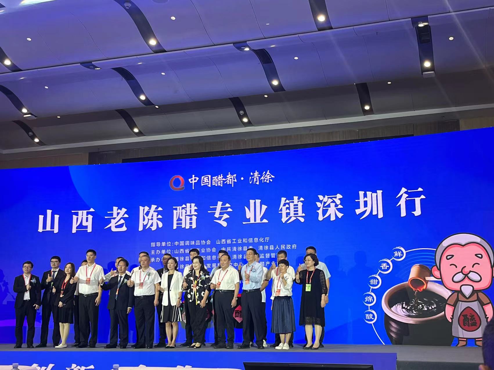 为进一步增强山西醋企业的凝聚力,不断扩大“山西老陈醋”品牌影响力,擦亮这个金字招牌,进一步做强醋产业、做优醋品牌、做精醋文化,实现山西醋企业合作共赢,推动山西老陈醋高质量发展,借助第109届全国糖酒商品交易会(深圳糖酒会)平台,10月12日,“山西老陈醋专业镇深圳行”品牌推介活动在深圳国际会展中心启动。本次推广活动受到中国调味品协会,以及各界政府领导的关注,我公司郝文扬也出席本次活动。