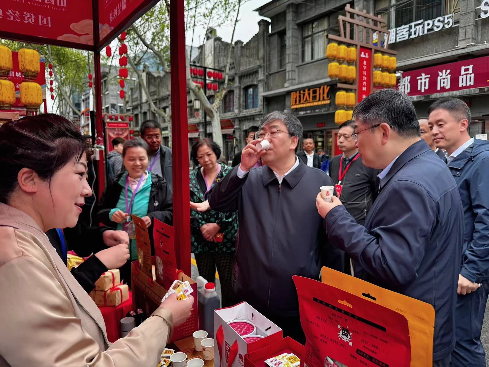 应山西省老字号协会之邀,宁化府益源庆醋业走进晋城,在古色古香的晋城市南大街步行街开坛迎客,浓浓的醋香似是从六百年前飘散而来,香郁扑鼻而酸中微甜。省商务厅副厅长梁志勇更是在展台前驻足,饮一口宁化府老陈醋,尝一块老陈醋制成醋糕,“酸、香、绵、甜”尽入口中,只愿道一声“美”。