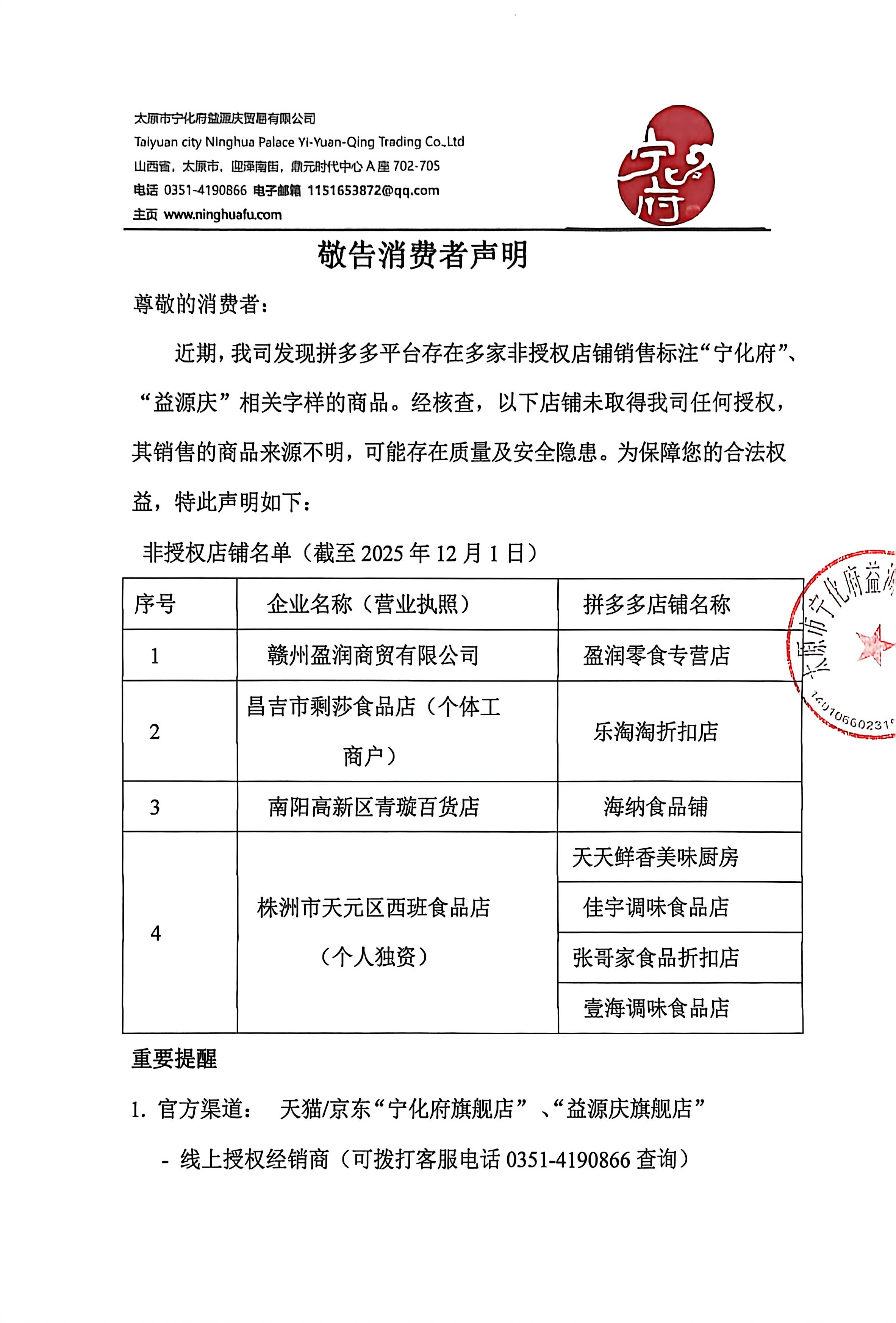 敬告消费者-拼多多平台非授权店铺
